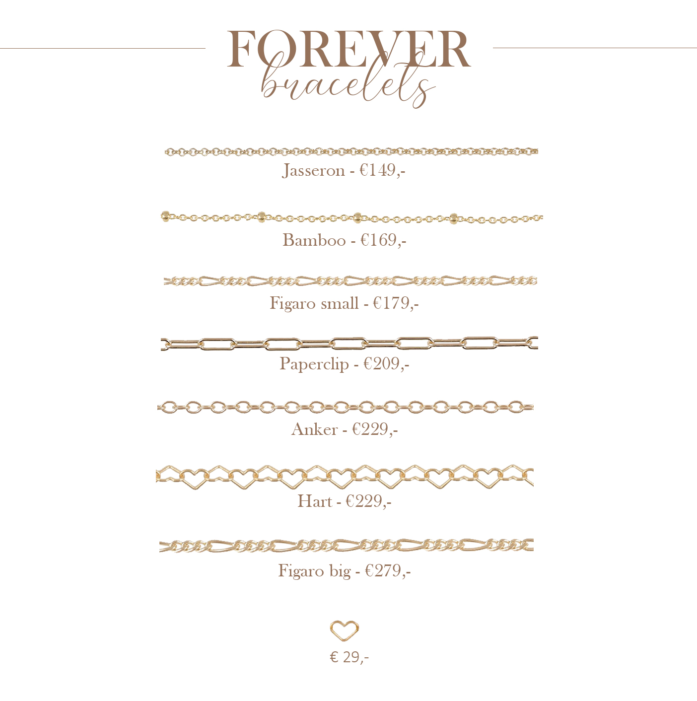 Of je nu een speciaal moment wilt herdenken of de band met een dierbare wilt symboliseren, de Forever bracelet is een tijdloos symbool, vastgelegd in goud!Â