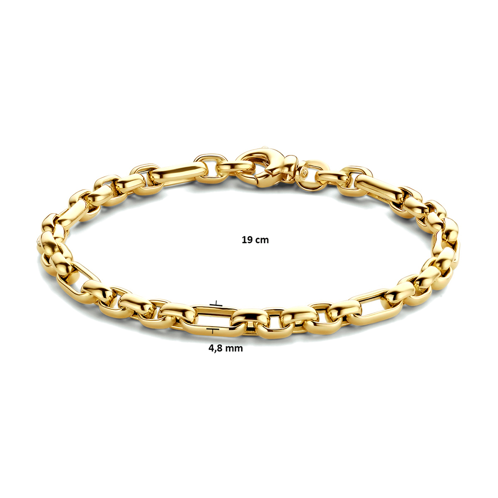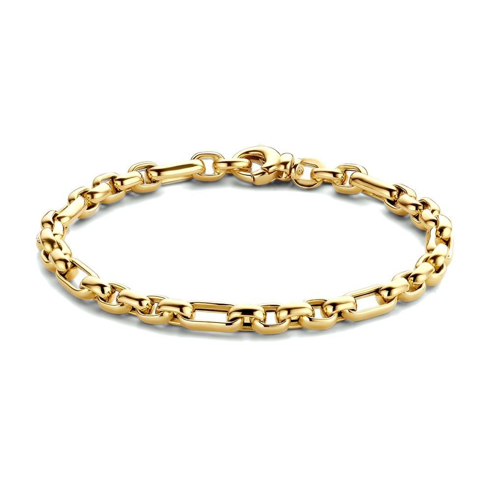 Een stijlvol 14-karaats geelgouden anker armband met een krachtig schakelmotief.