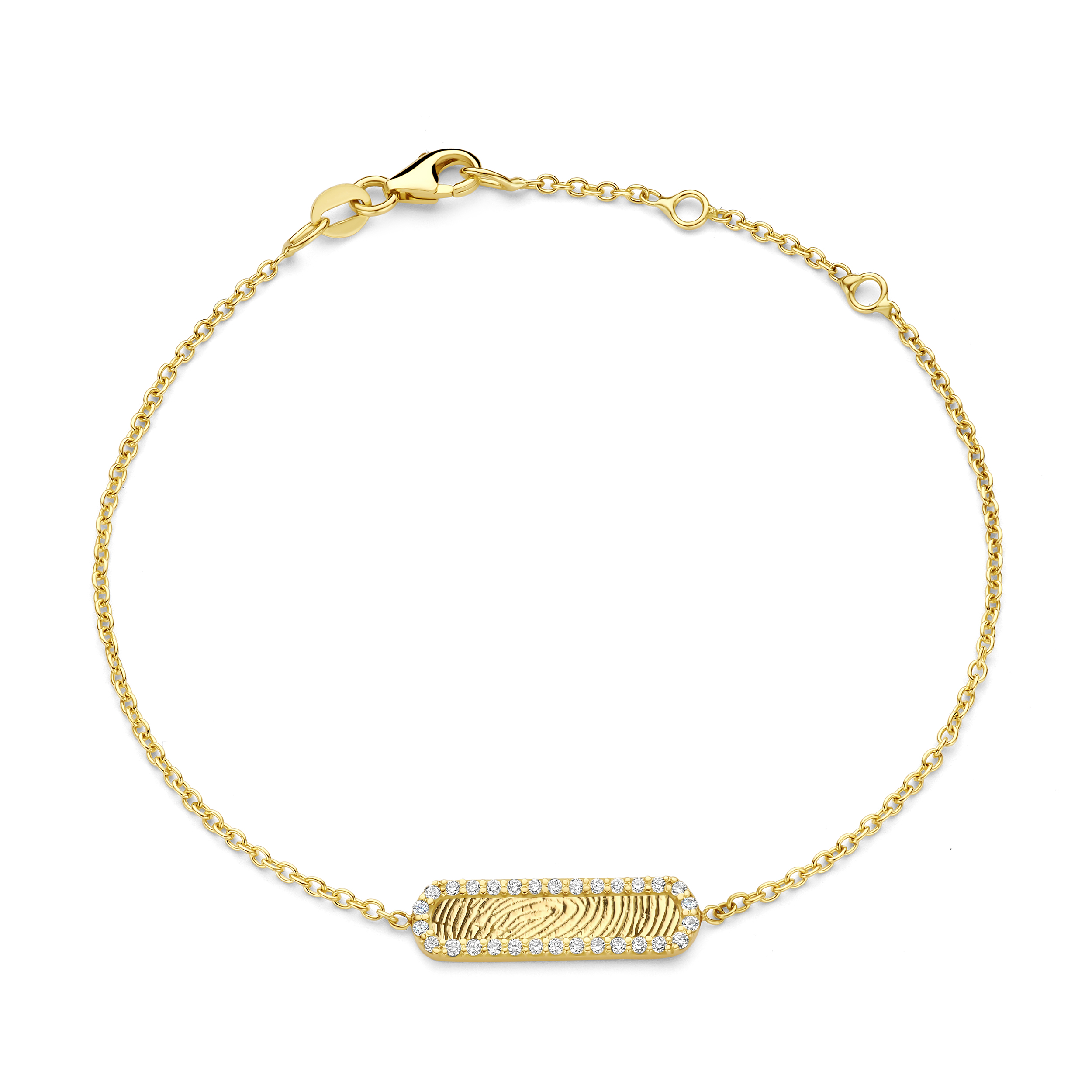 Deze elegante 14-karaats gouden armband is voorzien van de Bend Touch Pavé bedel, die kan worden gepersonaliseerd met een unieke 3D vingerafdruk.