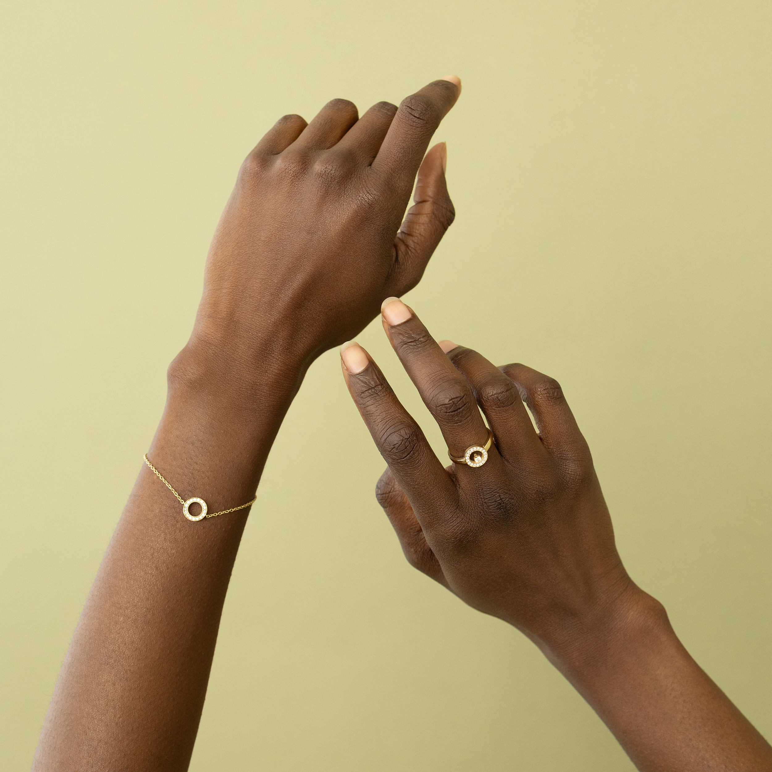 Deze armband Circle Pavé, vervaardigd van 14 karaats goud, straalt tijdloze elegantie uit en is ontworpen om bij elke gelegenheid te schitteren.