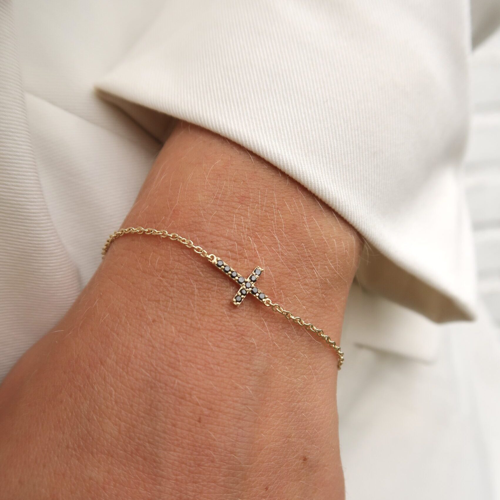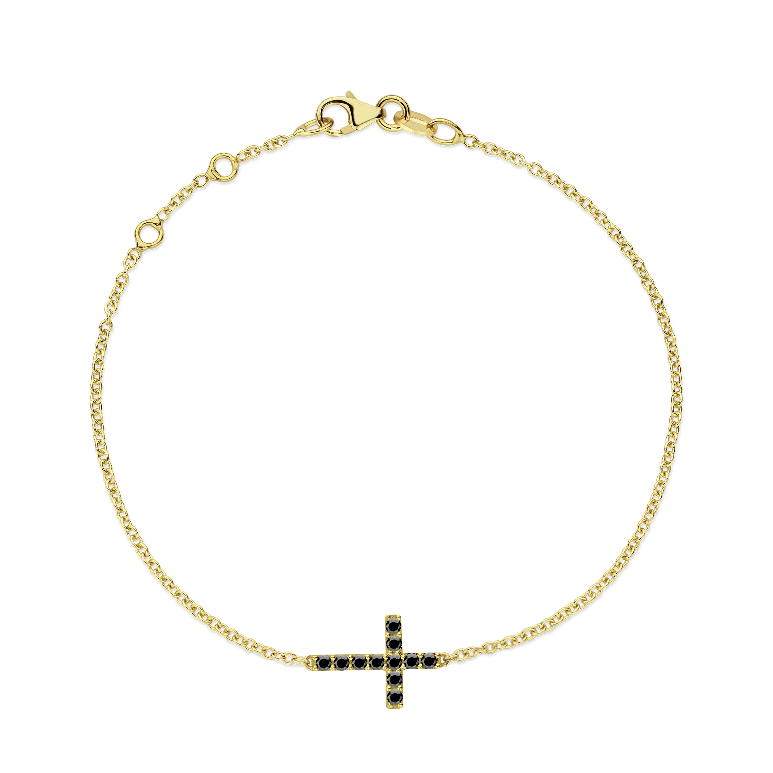 Ankerarmbandje van Minioro met de Cross Pavé bedel met 11 pavé gezette zwarte diamanten.