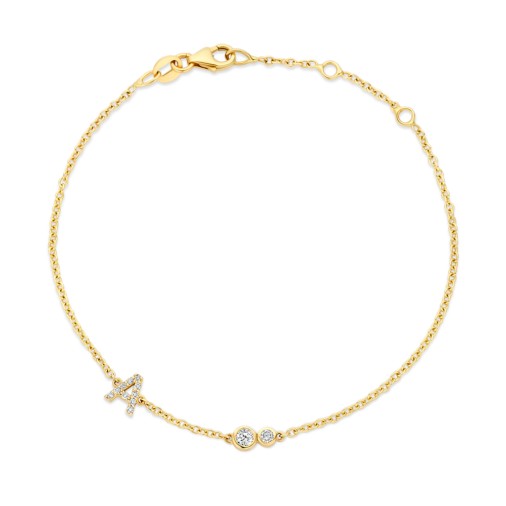 De combinatie van de sprankelende diamant en de gouden letter geeft de armband een bijzondere uitstraling. Kies een eigen initiaal of die van iemand die veel voor je betekent en maak het sieraad persoonlijk.