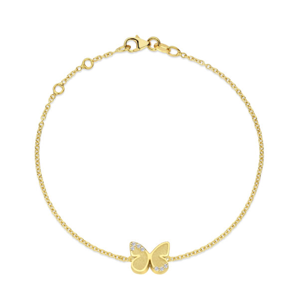 De Armband Vlinder Memory Pavé is een elegant en betekenisvol sieraad, gemaakt van 14-karaats goud.