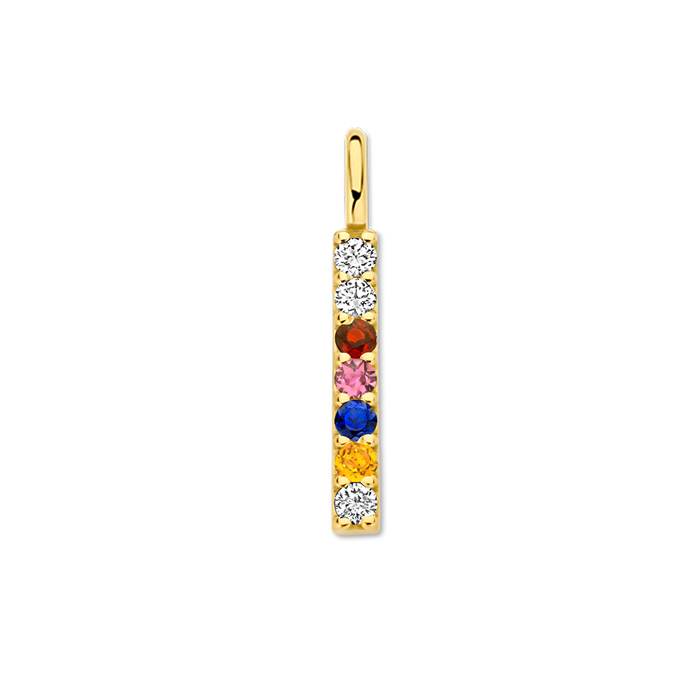 De Diamondbar Tag Milestone met vier geboortestenen is een uniek eerbetoon aan jouw mooiste momenten: een 14 karaats gouden staafje, ingelegd met vier edelstenen naar keuze en verfraaid met drie fonkelende witte diamanten.