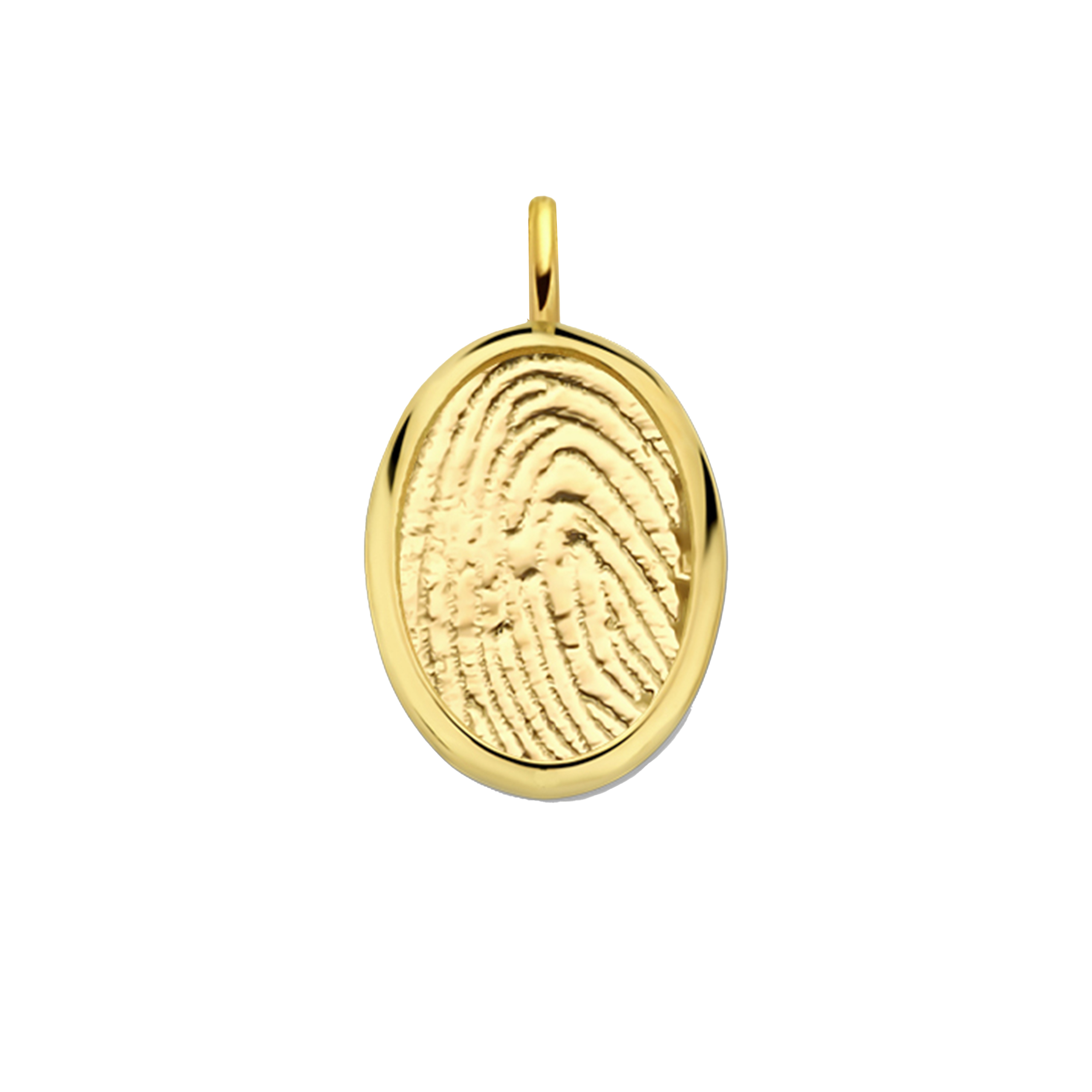 Deze tijdloze hangbedel is verkrijgbaar in 14 karaats goud en kan worden voorzien van een verfijnde 3D vingerafdruk.