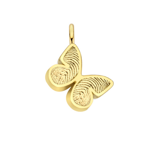 Deze sierlijke Vlinder hanger is verkrijgbaar in 14 karaats goud en kan worden voorzien van een persoonlijke 3D vingerafdruk.