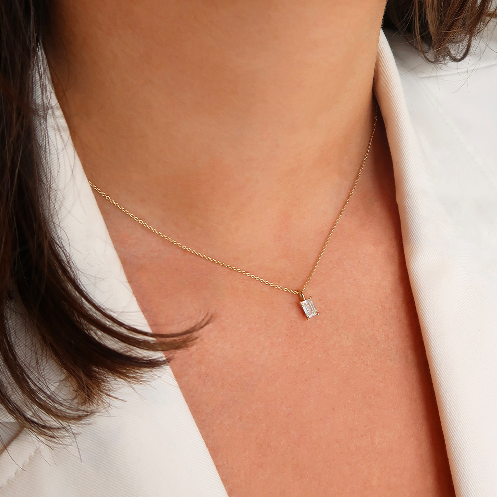Verrijk je ketting met deze 14-karaats gouden hanger, schitterend gezet met een 0.50 ct emerald-cut lab grown diamant.
