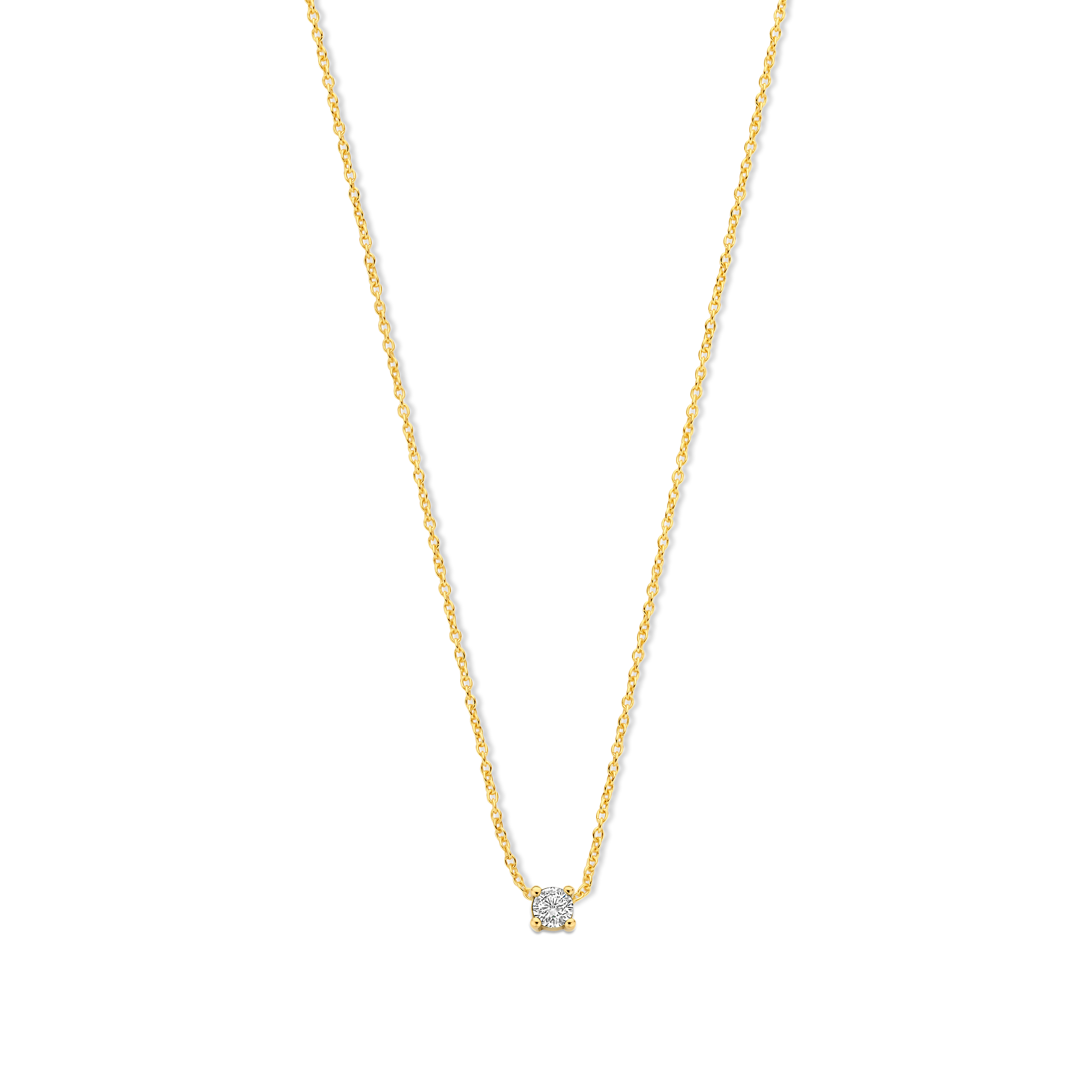 Deze klassieke ketting is vervaardigd van 14-karaats goud en heeft een bedel met een schitterende diamant van 0.05 ct, liefdevol gezet in een verfijnde 4-poots chaton zetting.