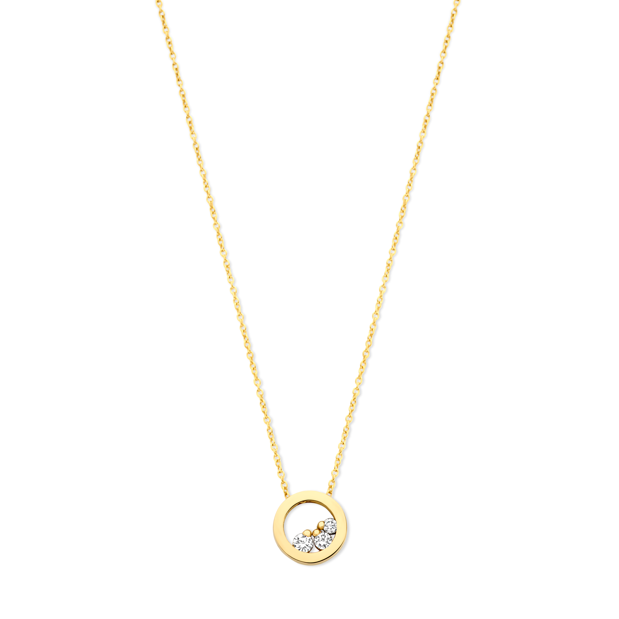 De ketting Circle Ascending is een speciale variant binnen de collectie waarbij drie diamanten, met een totaalgewicht van 0.08 ct, oplopend liggen als middelpunt van de cirkel.