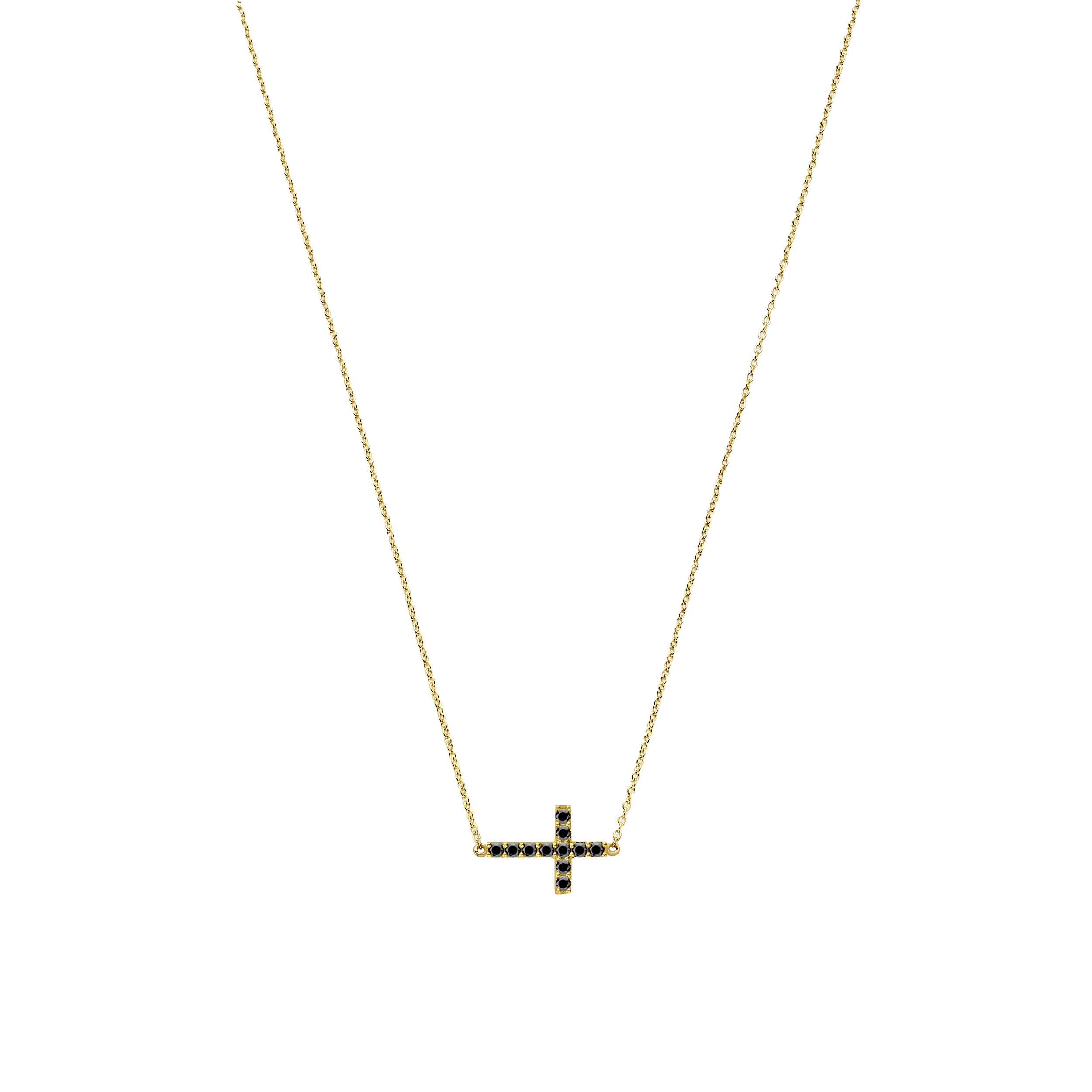 Voeg een krachtig symbool toe aan je look met deze Minioro Cross Pavé ketting, bezet met 11 sprankelende pavé gezette zwarte diamanten.