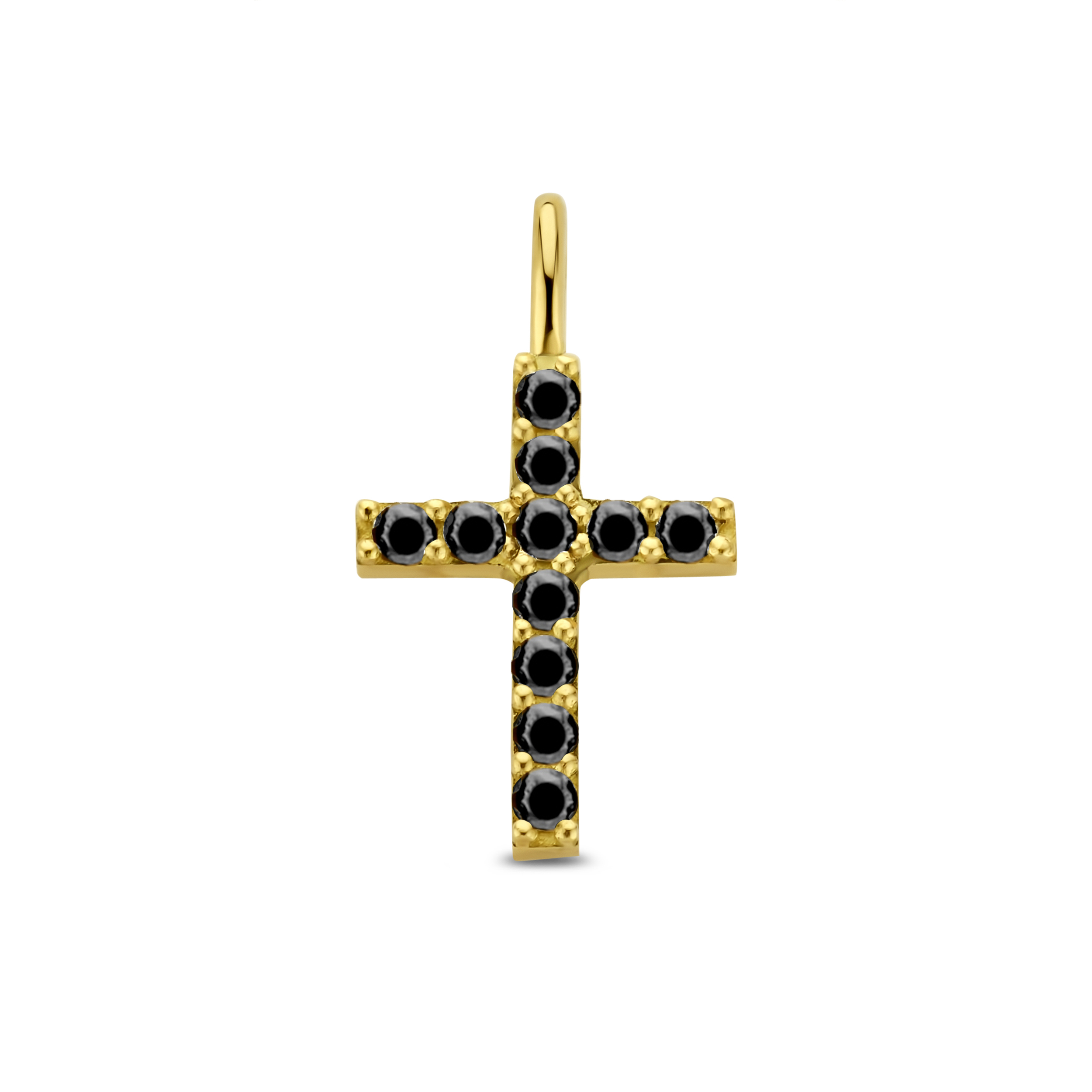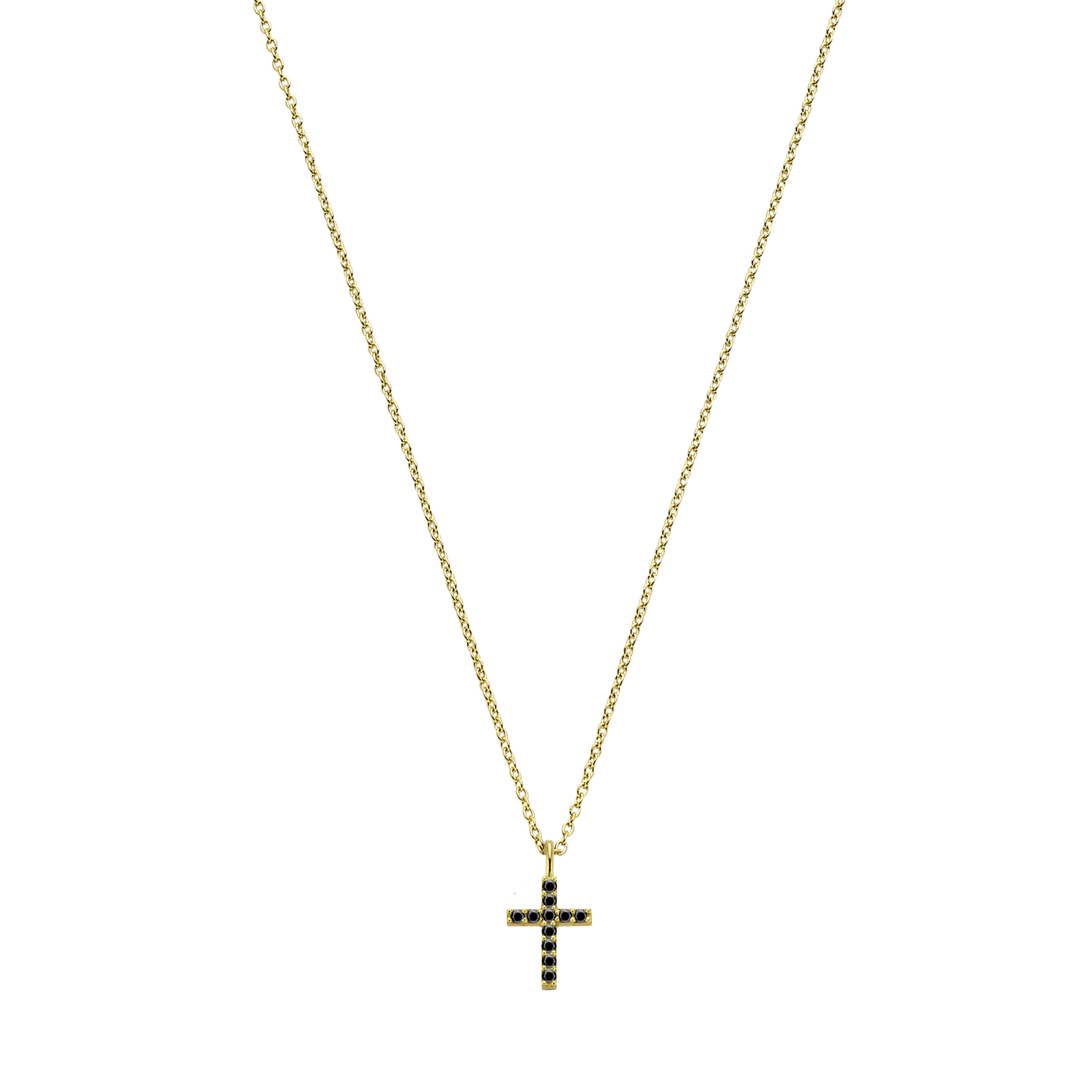 Ontwerp jouw Minioro-ketting met de Cross Pavé hanger, versierd met 11 zwarte pavé bezette diamanten.