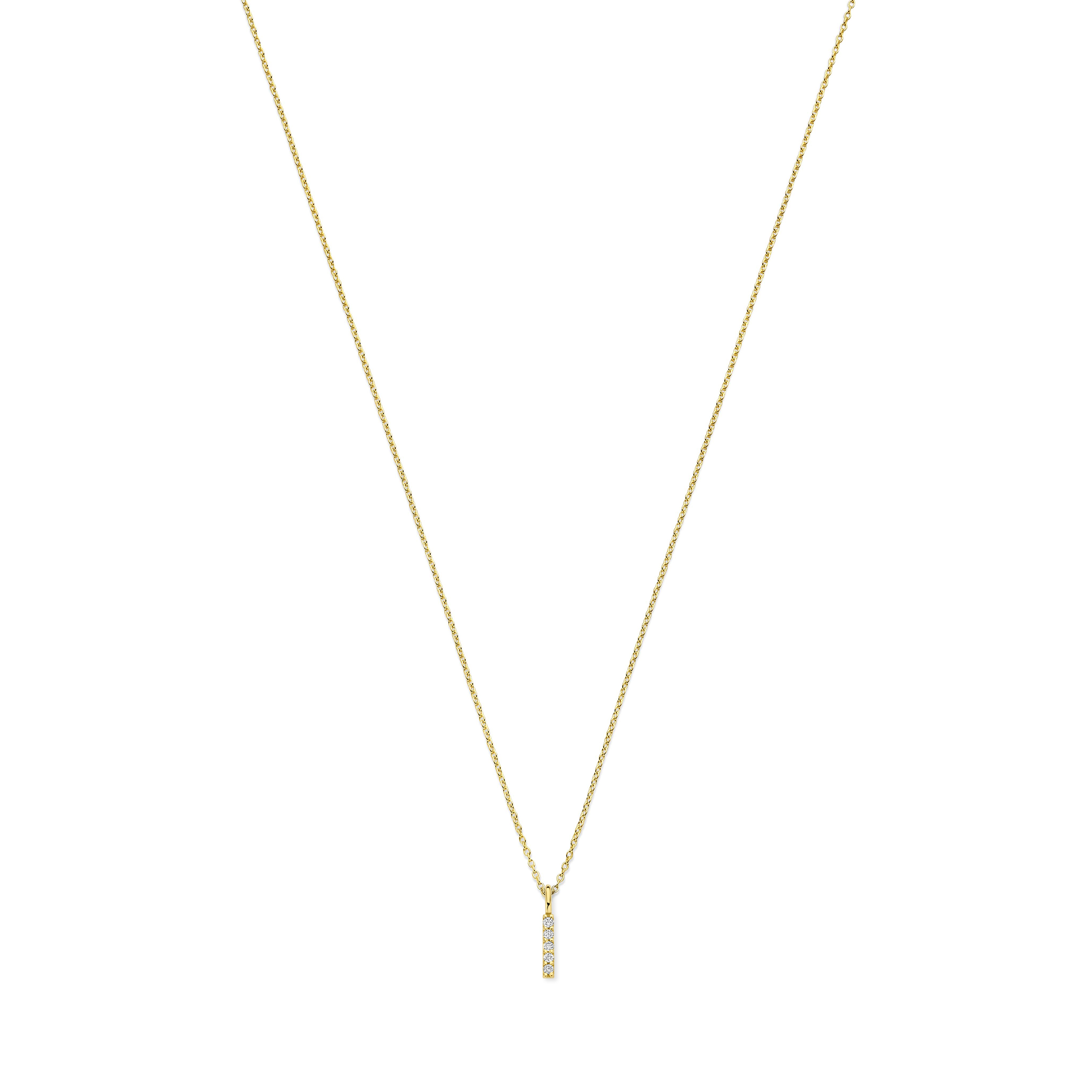 De ketting Diamondbar Tag Small is vervaardigd uit 14 karaats goud en voorzien van een subtiel goudstaafje dat pavé bezet is met vijf witte diamanten.