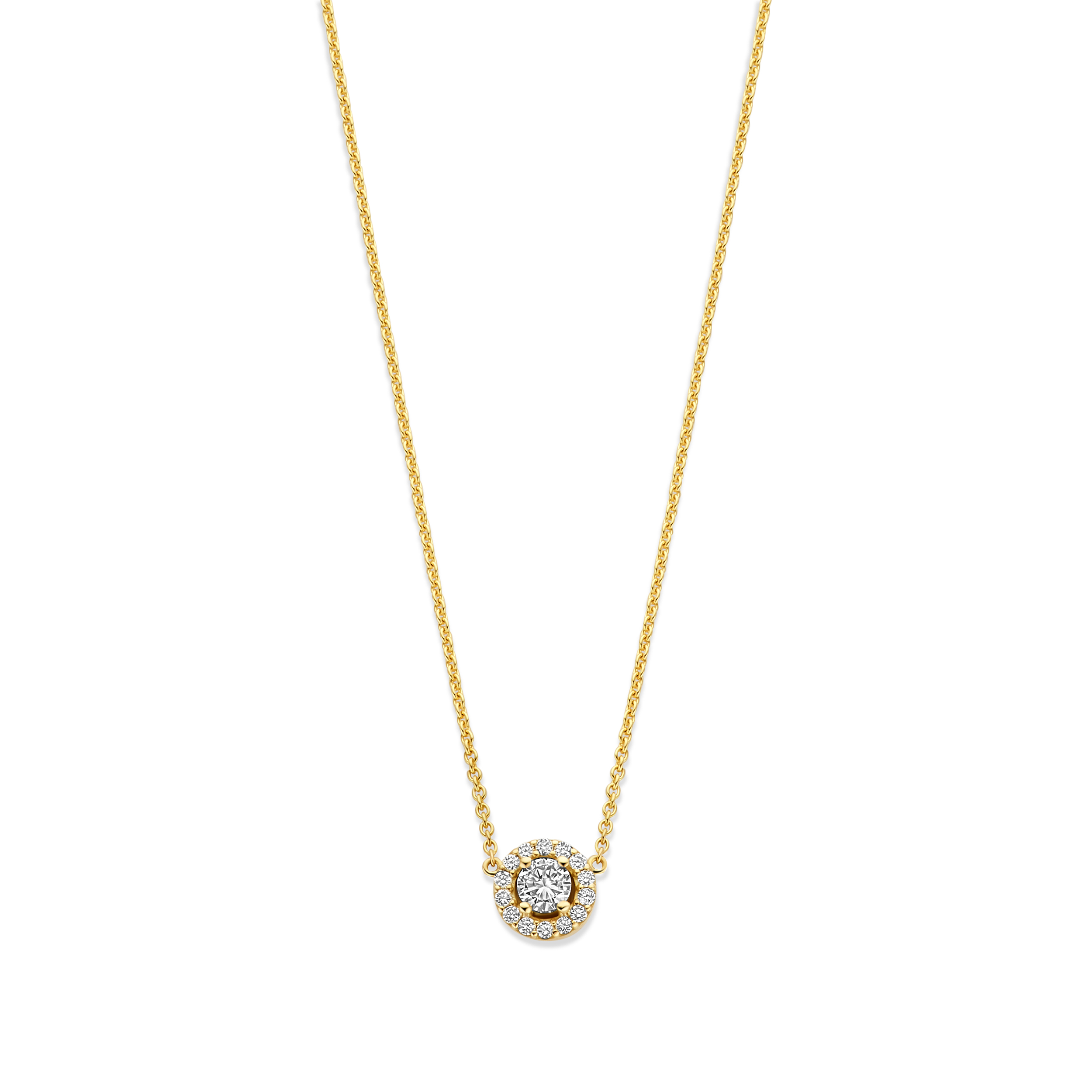 Met een grote lab-grown diamant in het midden, omringd door een sprankelende halo van lab-grown diamanten, heeft deze ketting een totaal gewicht van 0.41 ct.