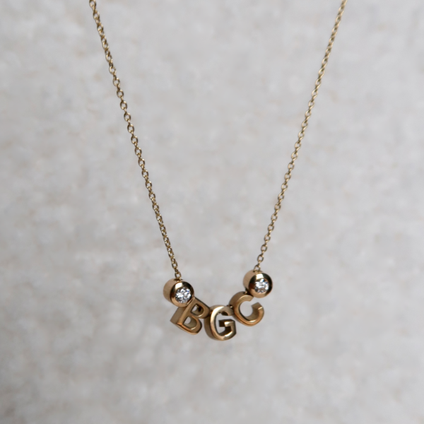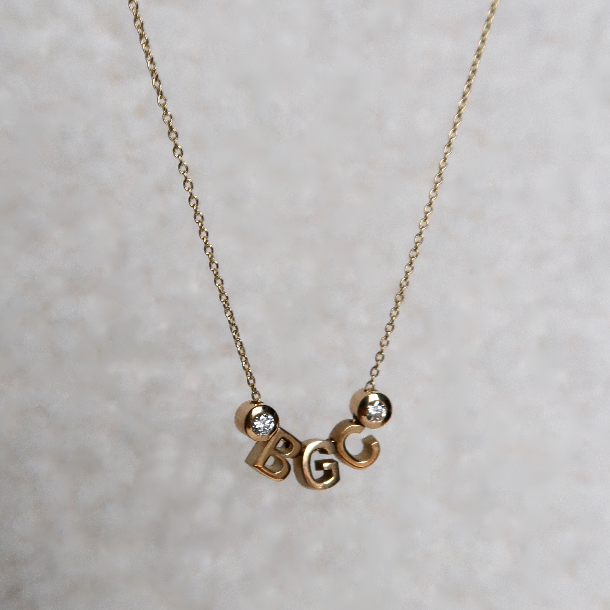 Ontwerp jouw unieke Minioro ketting met deze letterbedels en voeg een andere bedel uit de collecties toe, zoals een Diamondbar Tag, Ovalia, initiaal of symbool.