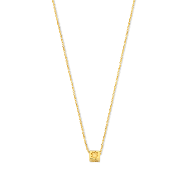 Ontwerp jouw eigen kubussymbool ketting: een uniek sieraad van 14-karaats goud met een symbolische kubus die voor jou een speciale betekenis heeft.