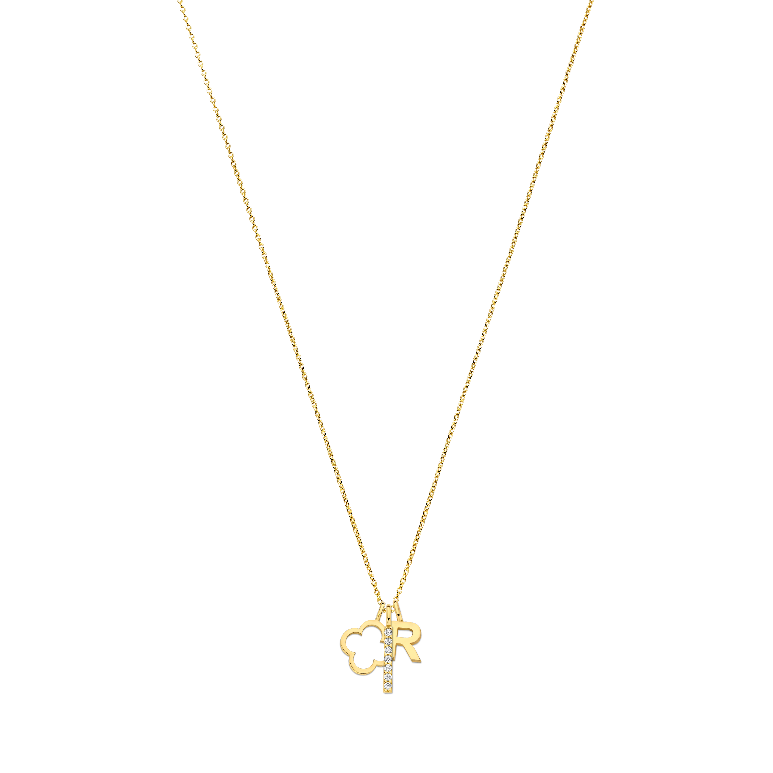 Combineer de Hangleafs met andere hangbedels uit onze collecties toe, zoals een Diamondbar Tag, Ovalia, initiaal en symbool en creëer een ketting geheel in jouw unieke stijl.