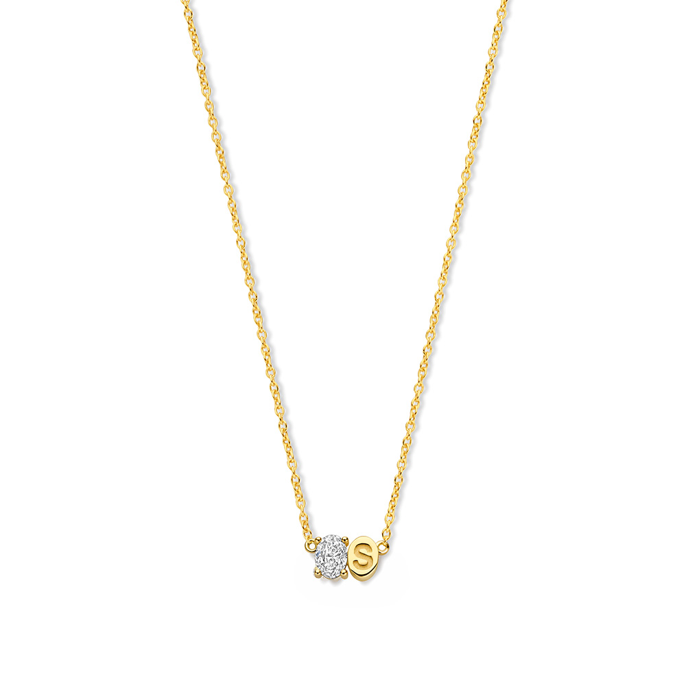 De combinatie van de sprankelende diamant en de gouden letter geeft de ketting een bijzondere uitstraling. Kies een eigen initiaal of die van iemand die veel voor je betekent en maak het sieraad persoonlijk.