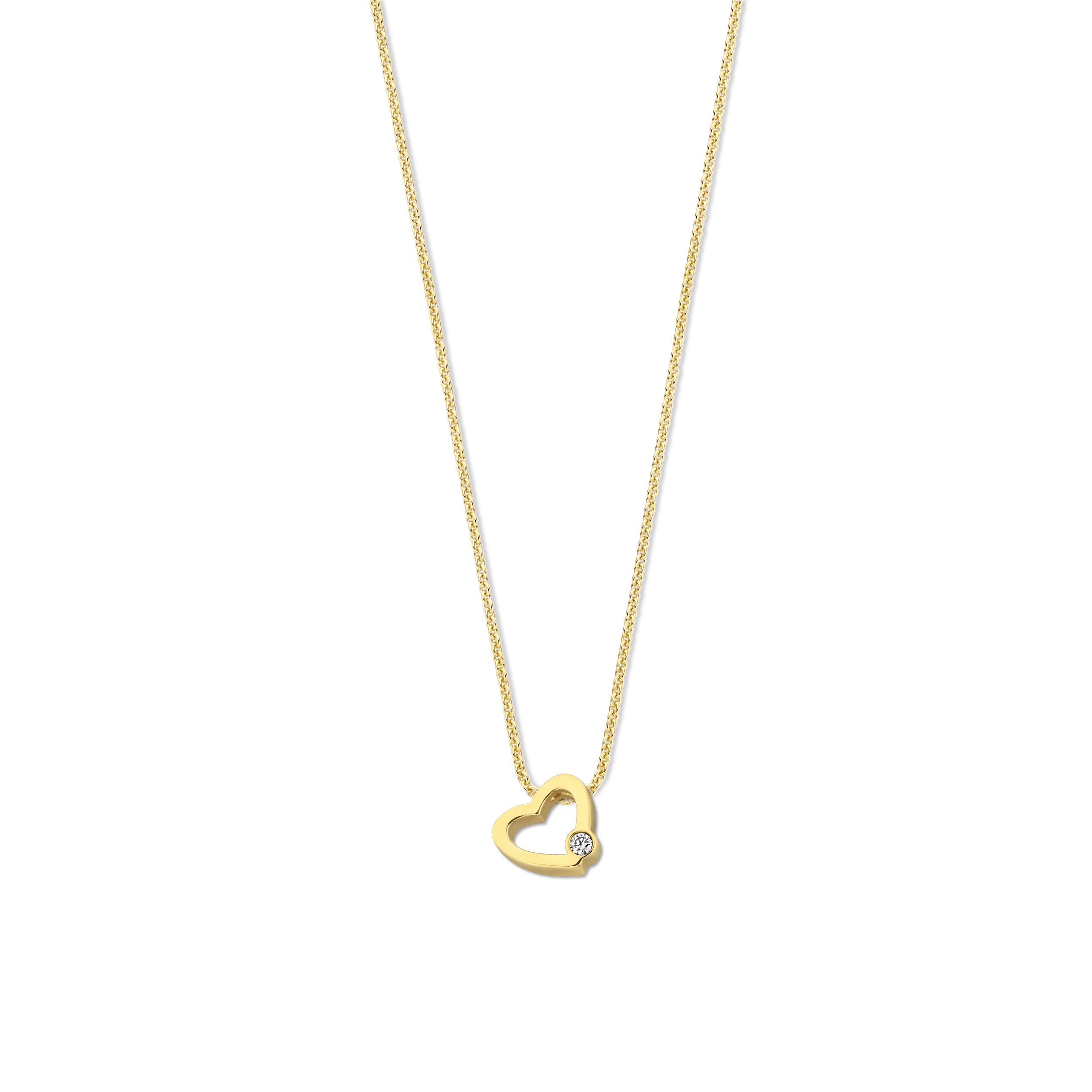 Ontwerp jouw eigen symbolische Minioro-ketting, vervaardigd uit 14-karaats goud, met een subtiel maar betekenisvol open hart en één diamant als centraal element.