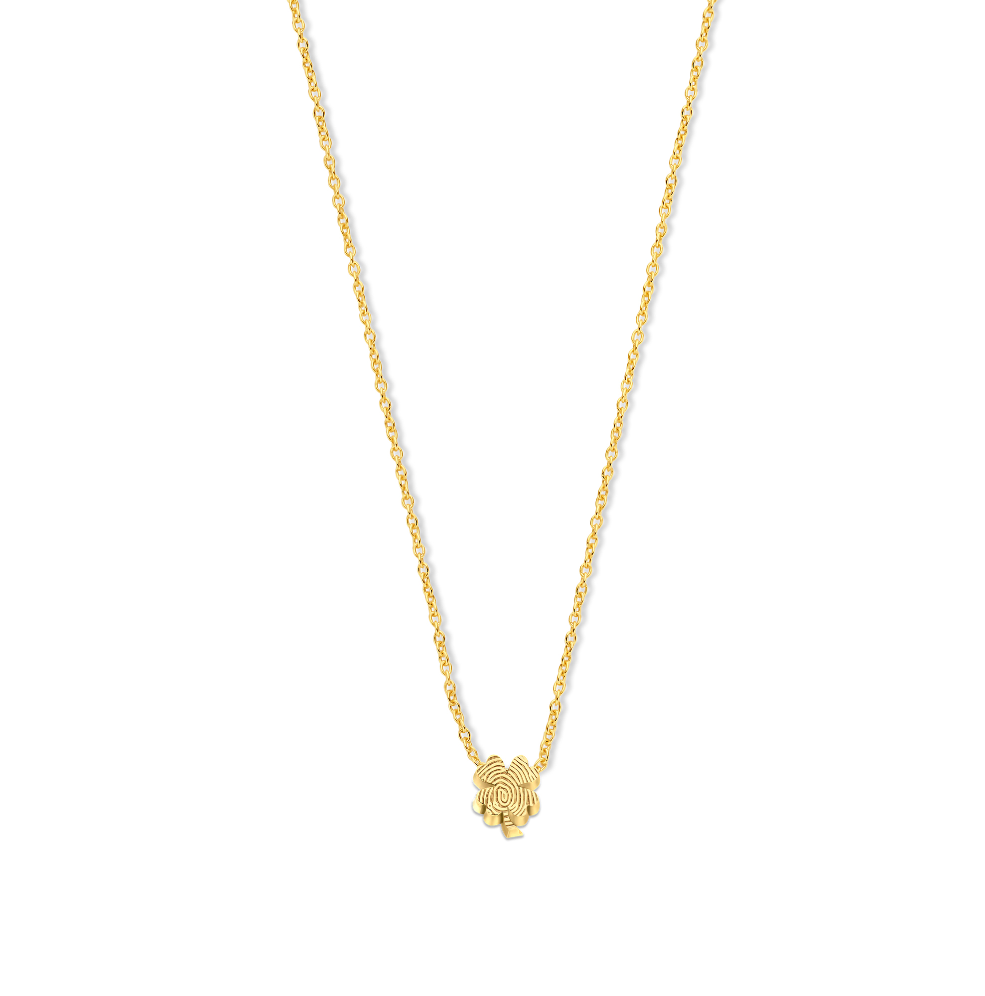 Creëer een onvergetelijk aandenken met onze vingerafdrukketting, waarin een symbolische klaver het centrale element vormt.