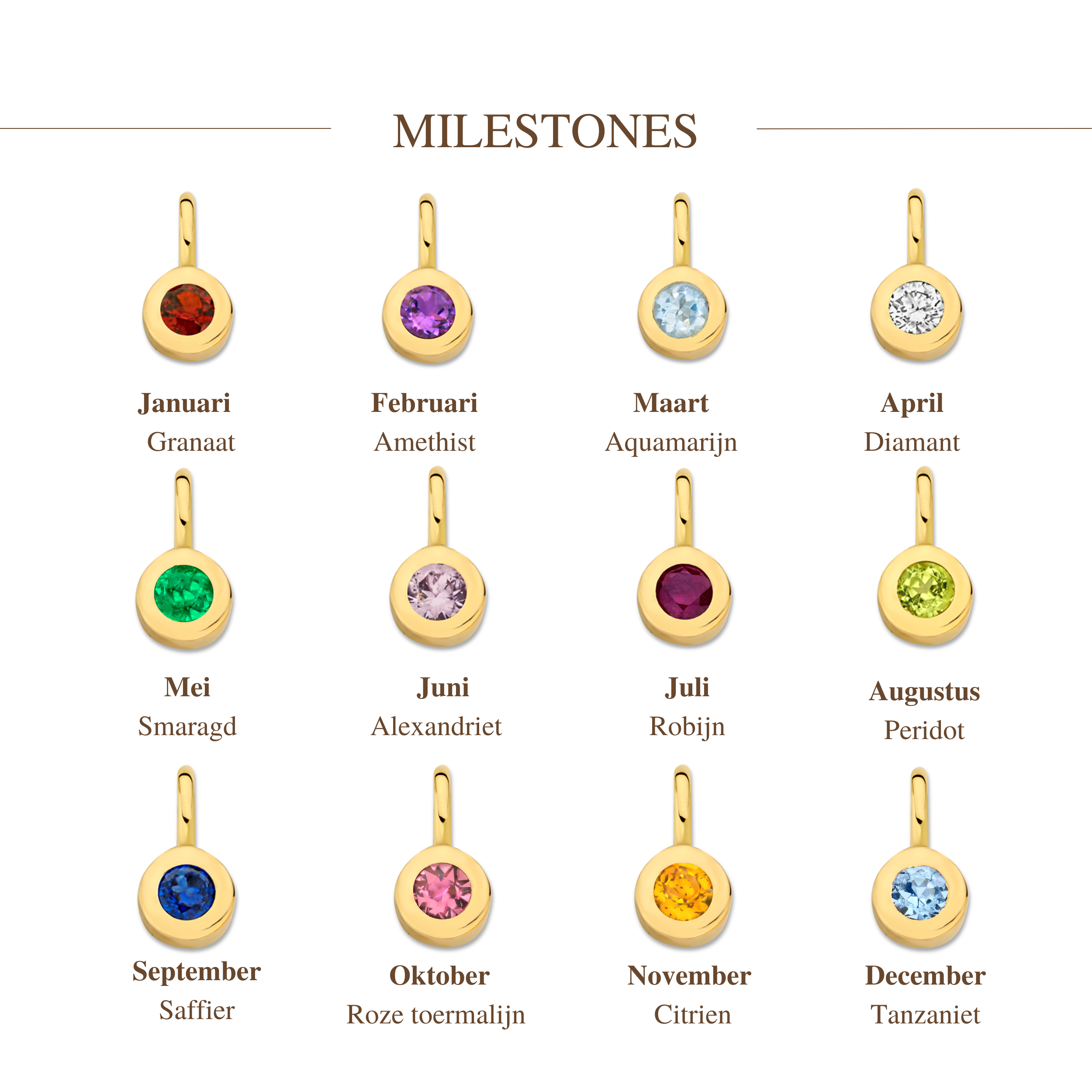 Voeg jouw gewenste Milestonetag toe aan je favoriete sieraad en creëer zo een uniek stuk dat perfect bij jou past.
