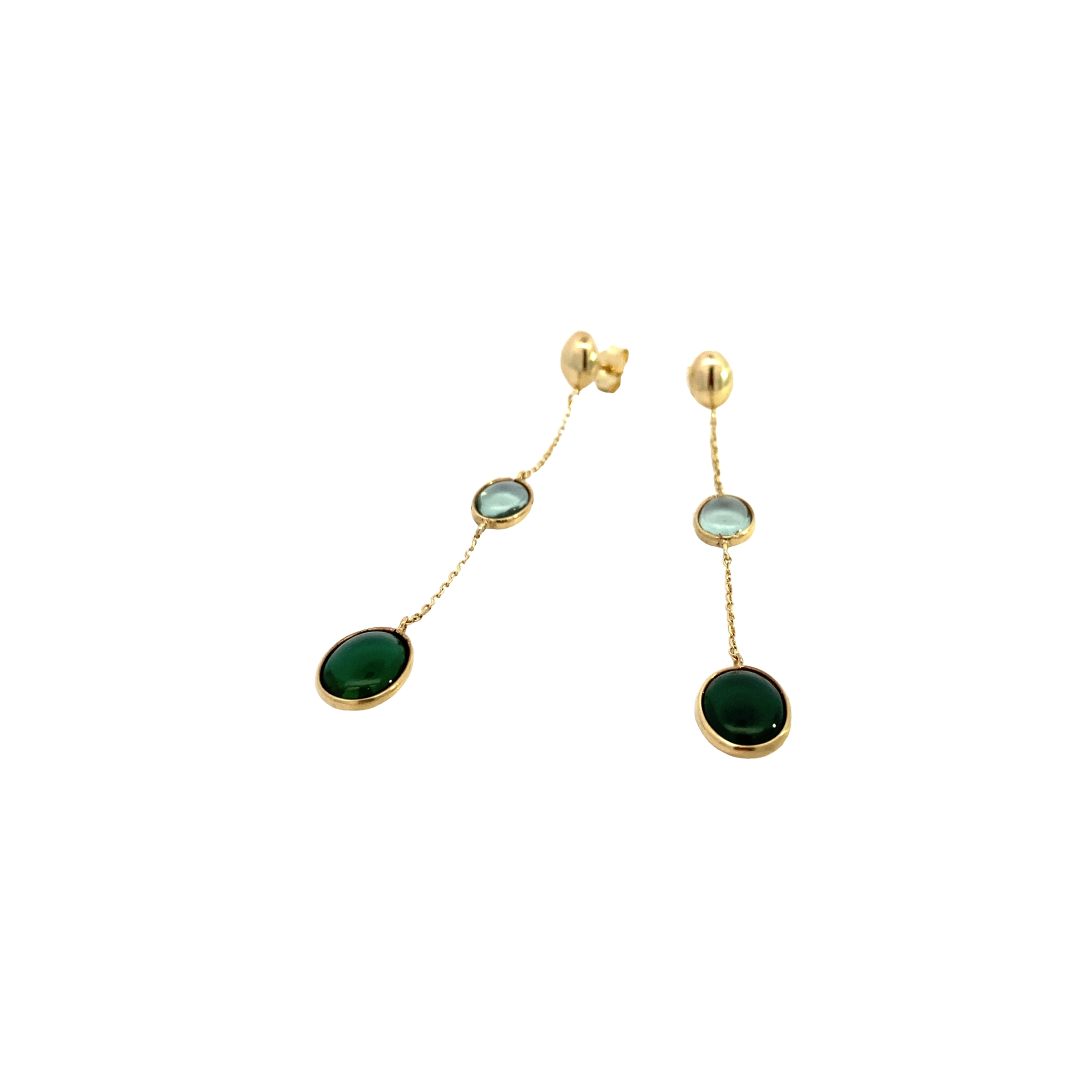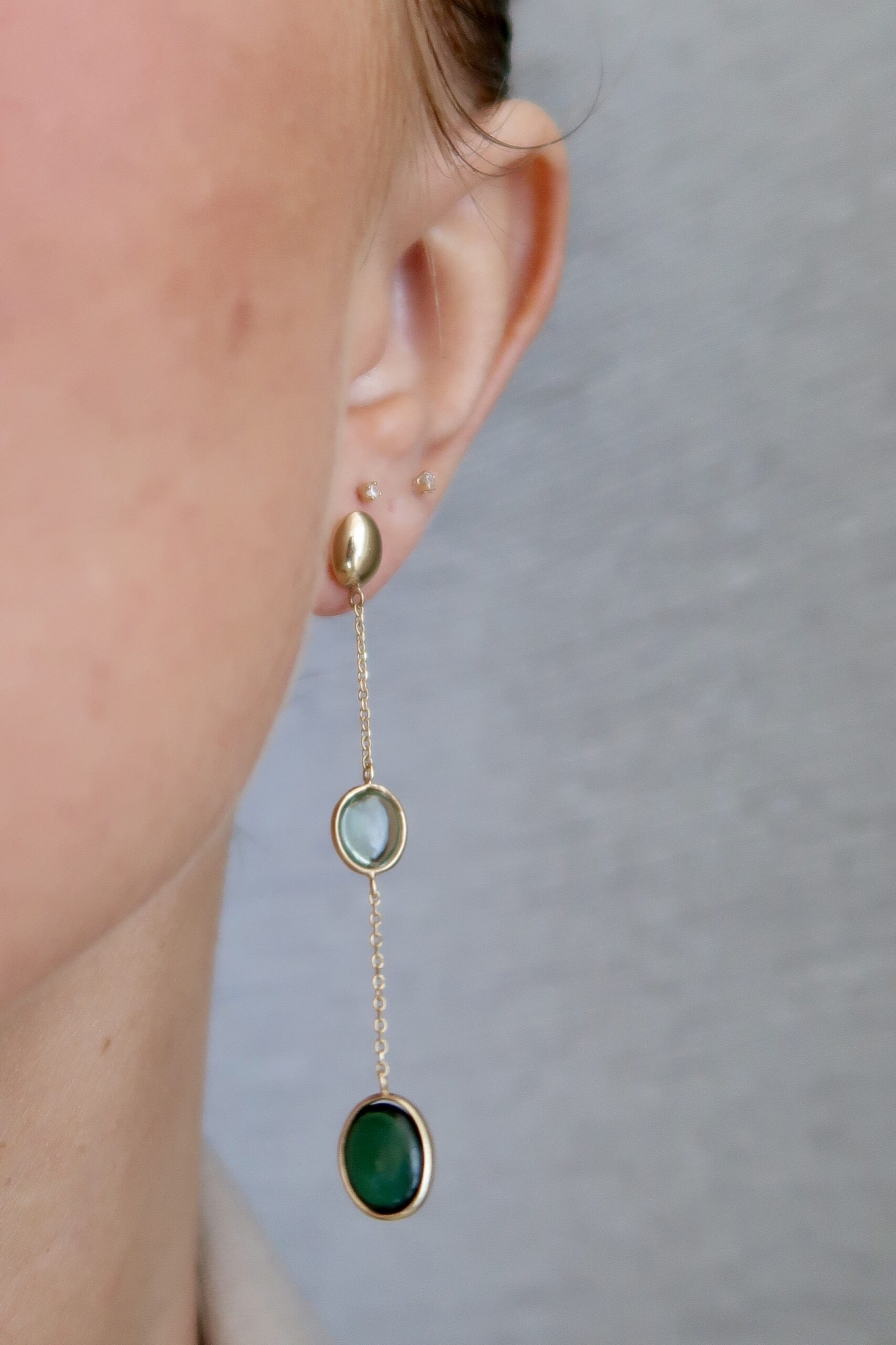Oorhangers met een groene Toermalijn en groene Amethist, gemaakt van 14 kt goud.