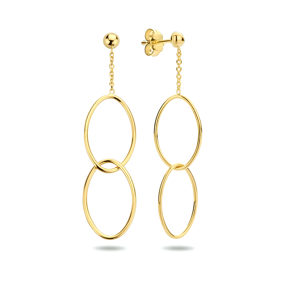 14-karaats geelgouden oorhangers uitgevoerd met twee ovaaltjes.