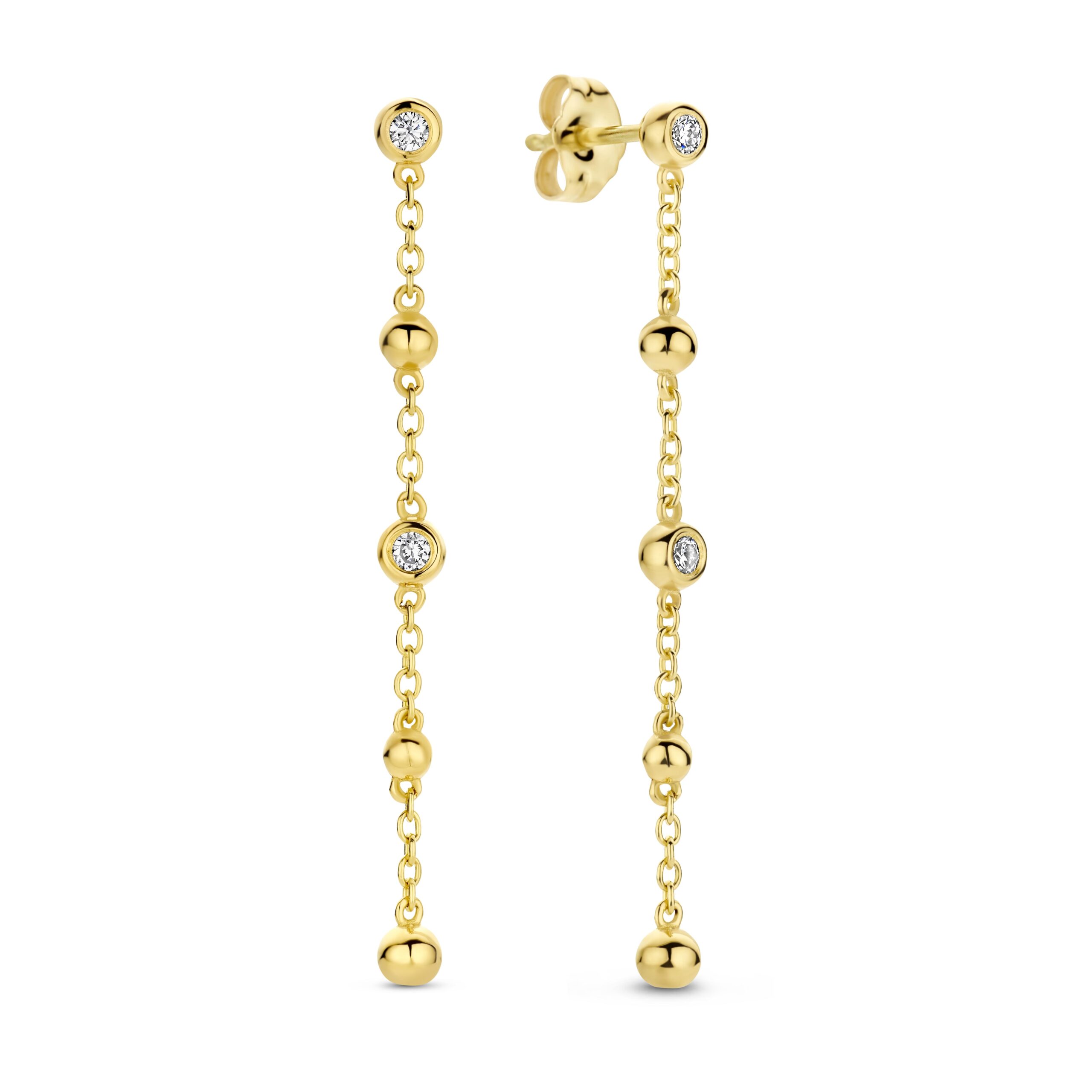Ontdek de speelsheid van de hangoorstekers van Dots & Diamonds, gemaakt van 14-karaats goud.