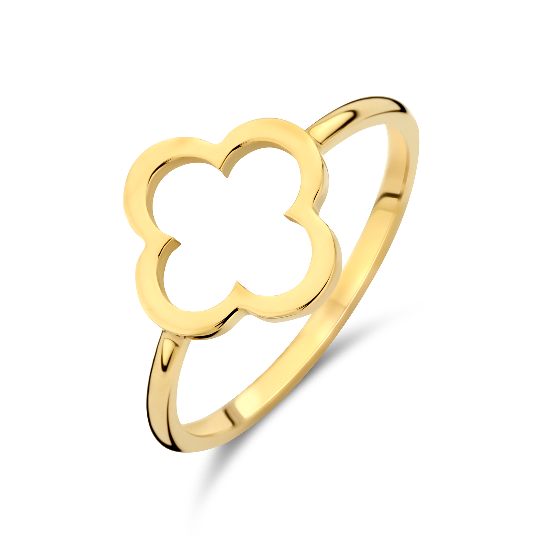 Deze Leaf ring kenmerkt zich door een subtiel open bladvormig ontwerp, geïnspireerd door de natuurlijke klavervorm, voor een unieke en elegante uitstraling.