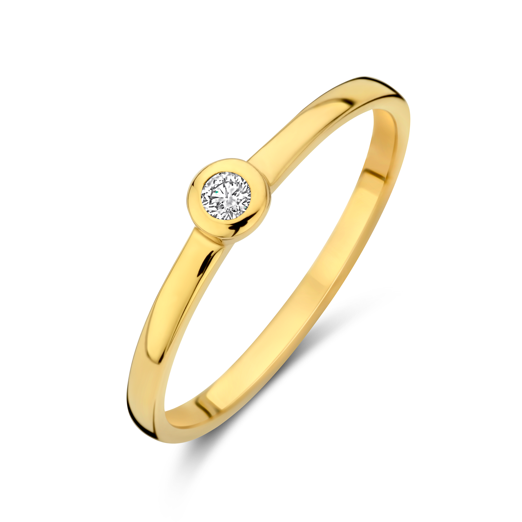 Deze prachtige ring is gemaakt van 14-karaats goud en heeft een schitterende diamant van 0.05 ct, zorgvuldig gezet in een gladde ronde kast.