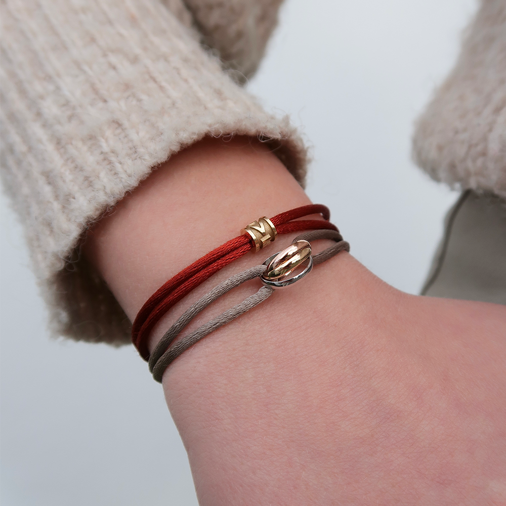 De Satin Charm Tube armband combineert een satijnen koord met een 14-karaats gouden Charm Tube-bedel – subtiel, maar groots in betekenis.