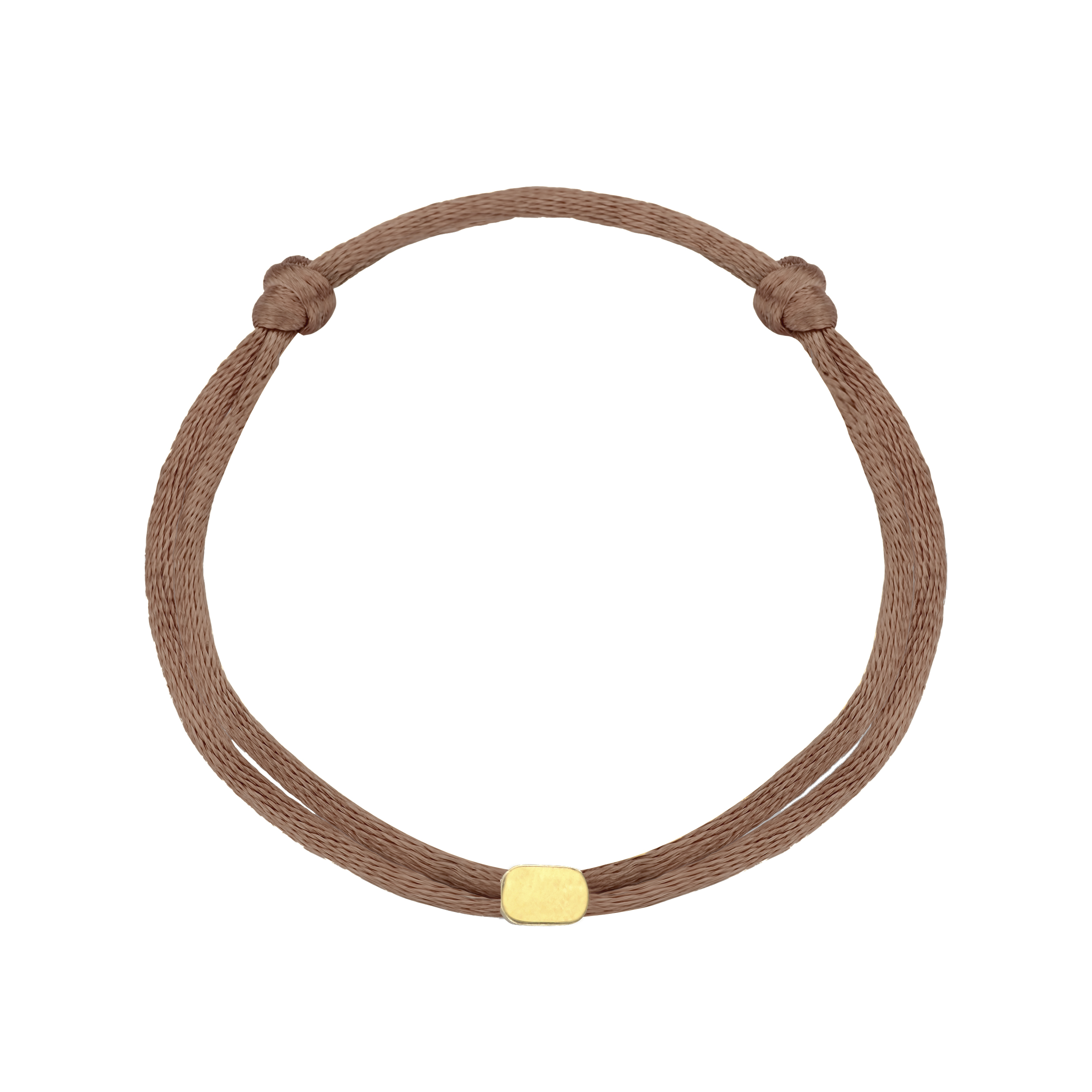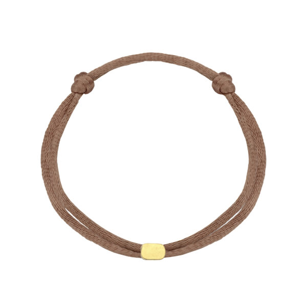 Een satijnen armband met een 14-karaats gouden graveerbedel.