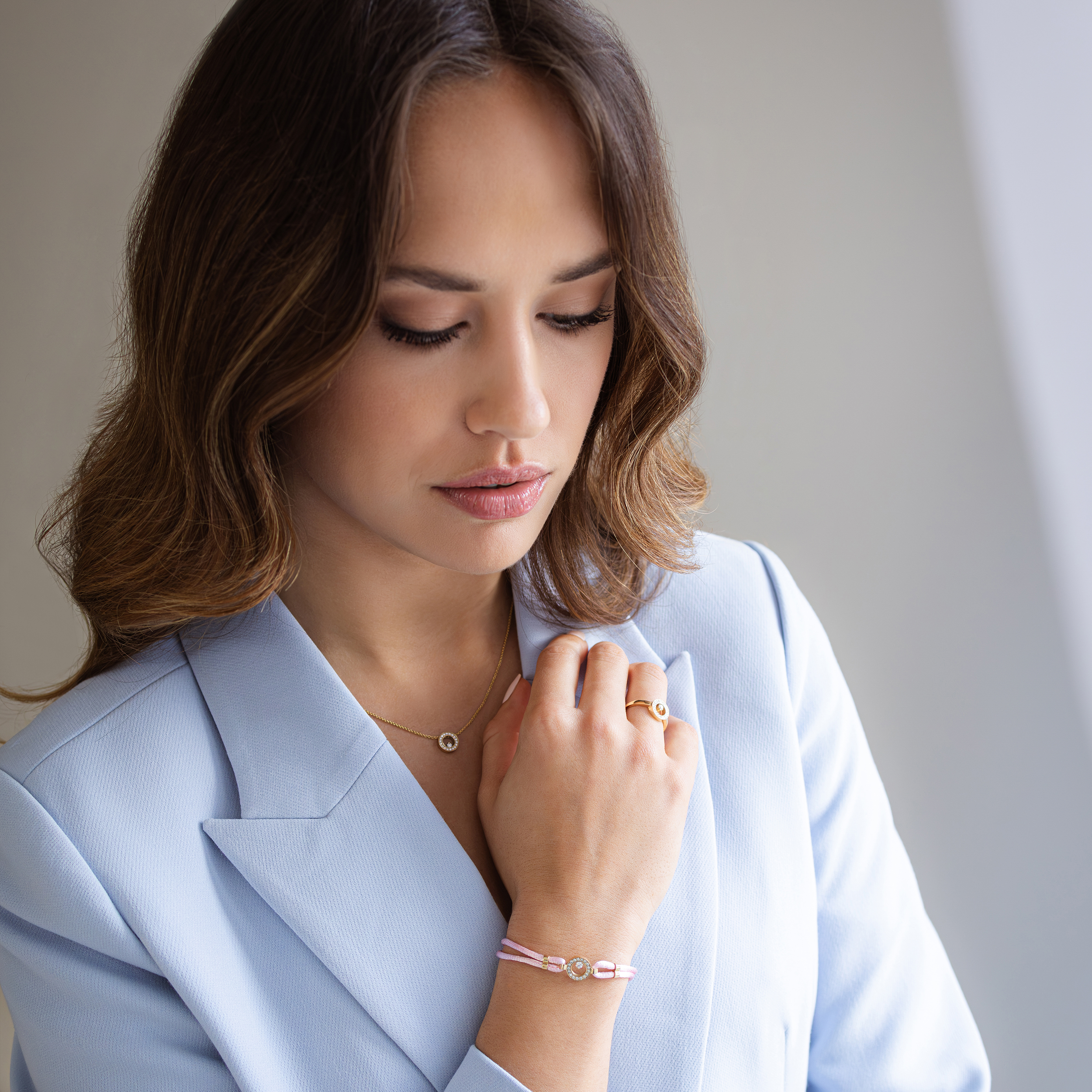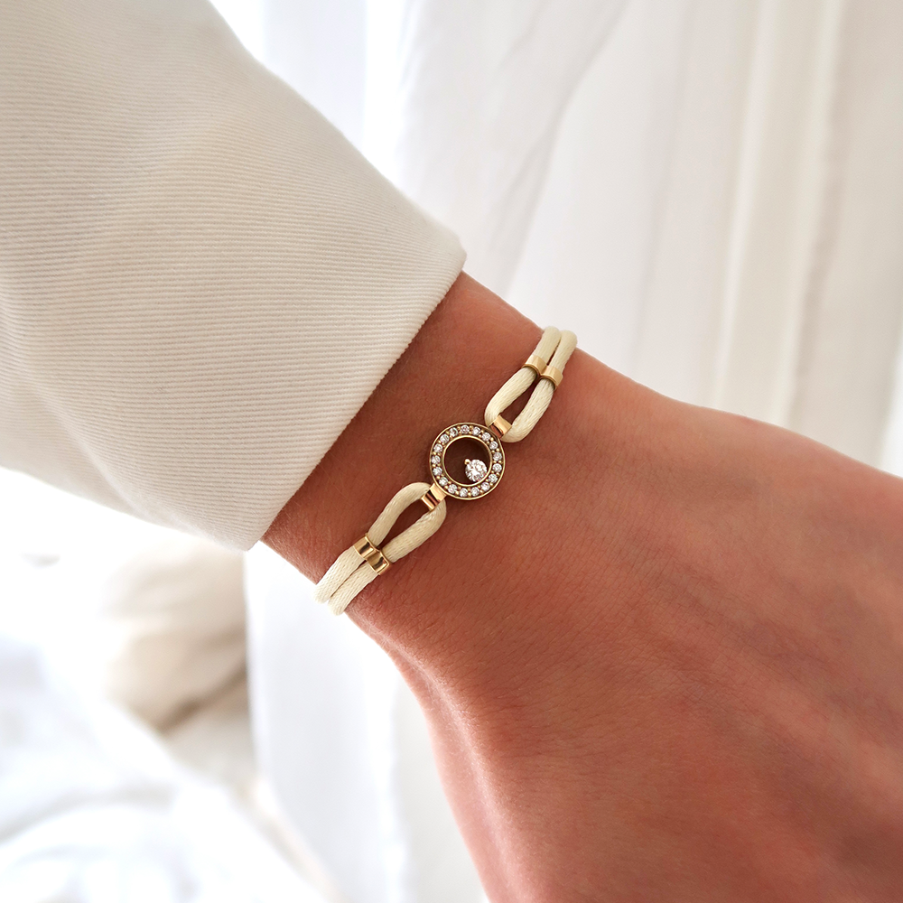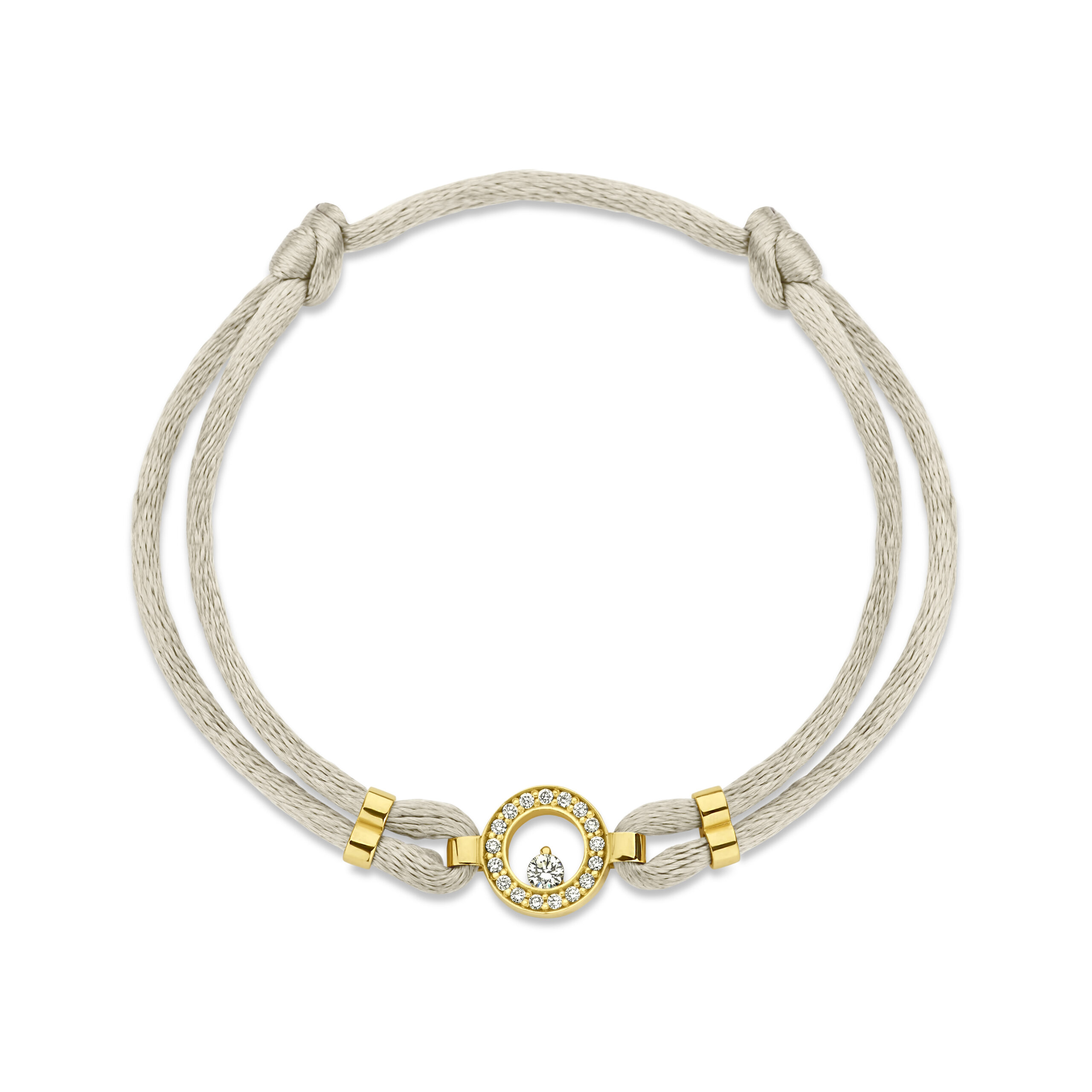 Met een totaal van 0.23 ct aan schitterende diamanten en de optie om je eigen satijnen koord te kiezen, kun je jouw eigen unieke Circle Deluxe armband samenstellen!