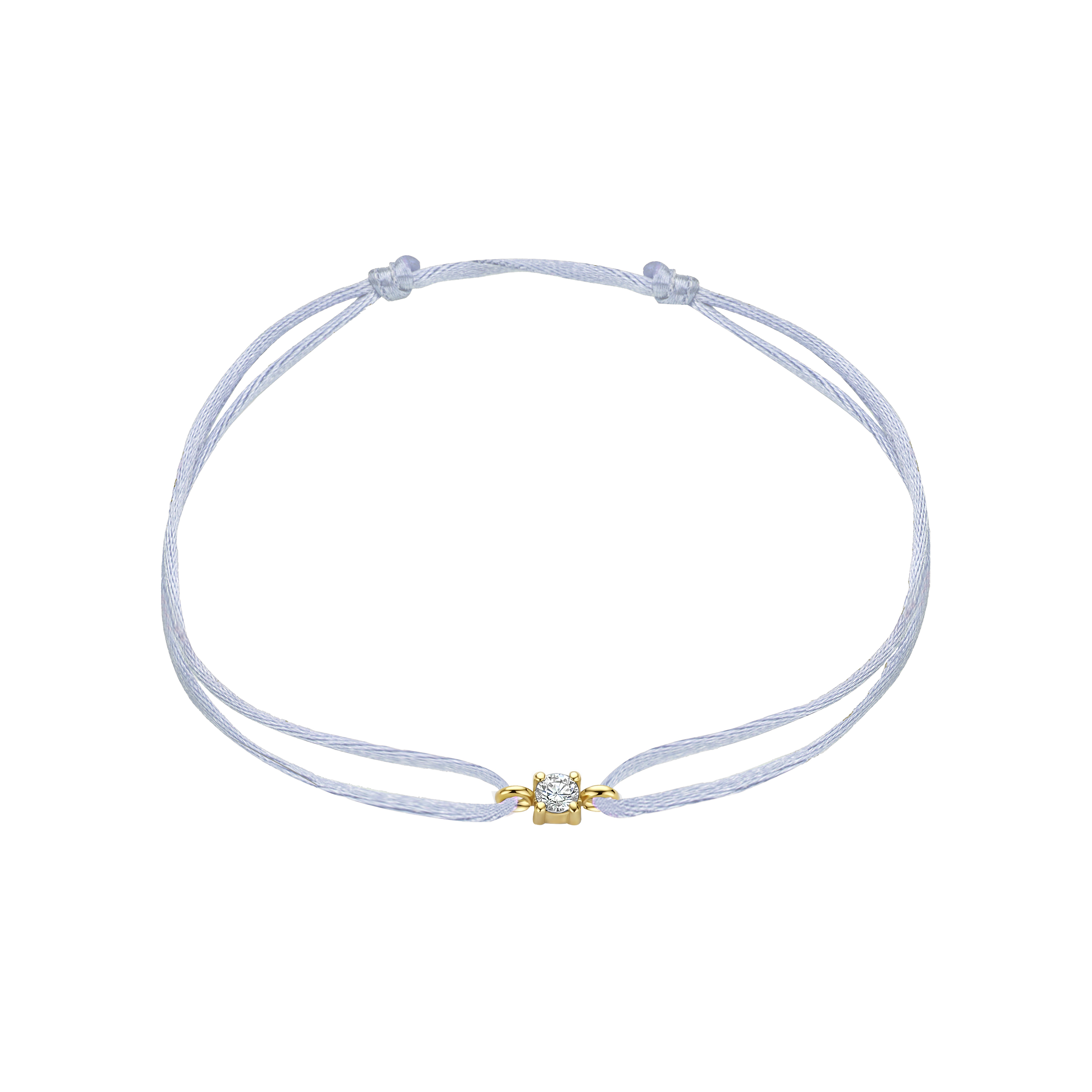 Een Satin armband met een zacht satijnkoord en een 14 karaats gouden zetting met een 0.10 ct lab grown diamant. Het minimalistische ontwerp laat de diamant mooi tot zijn recht komen en geeft de armband een subtiel sprankelend detail.