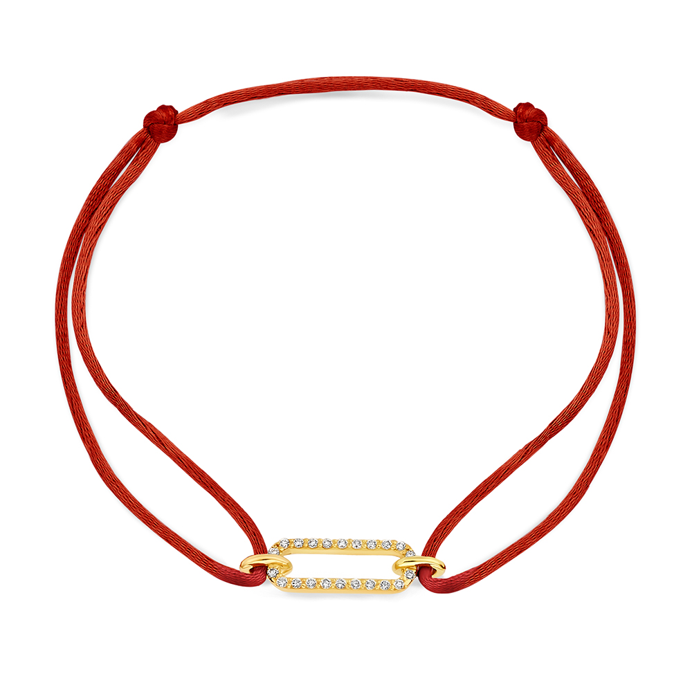 De Satin Fleur is een moderne en speelse armband die elegantie en casual luxe op een verfijnde manier combineert. Dit bijzondere sieraad is uitgevoerd met een zacht satijnkoord en een 14 karaat gouden paperclip schakel in het midden. De schakel is bezet met kleine pavé gezette diamanten die zorgen voor een subtiel sprankelend effect.