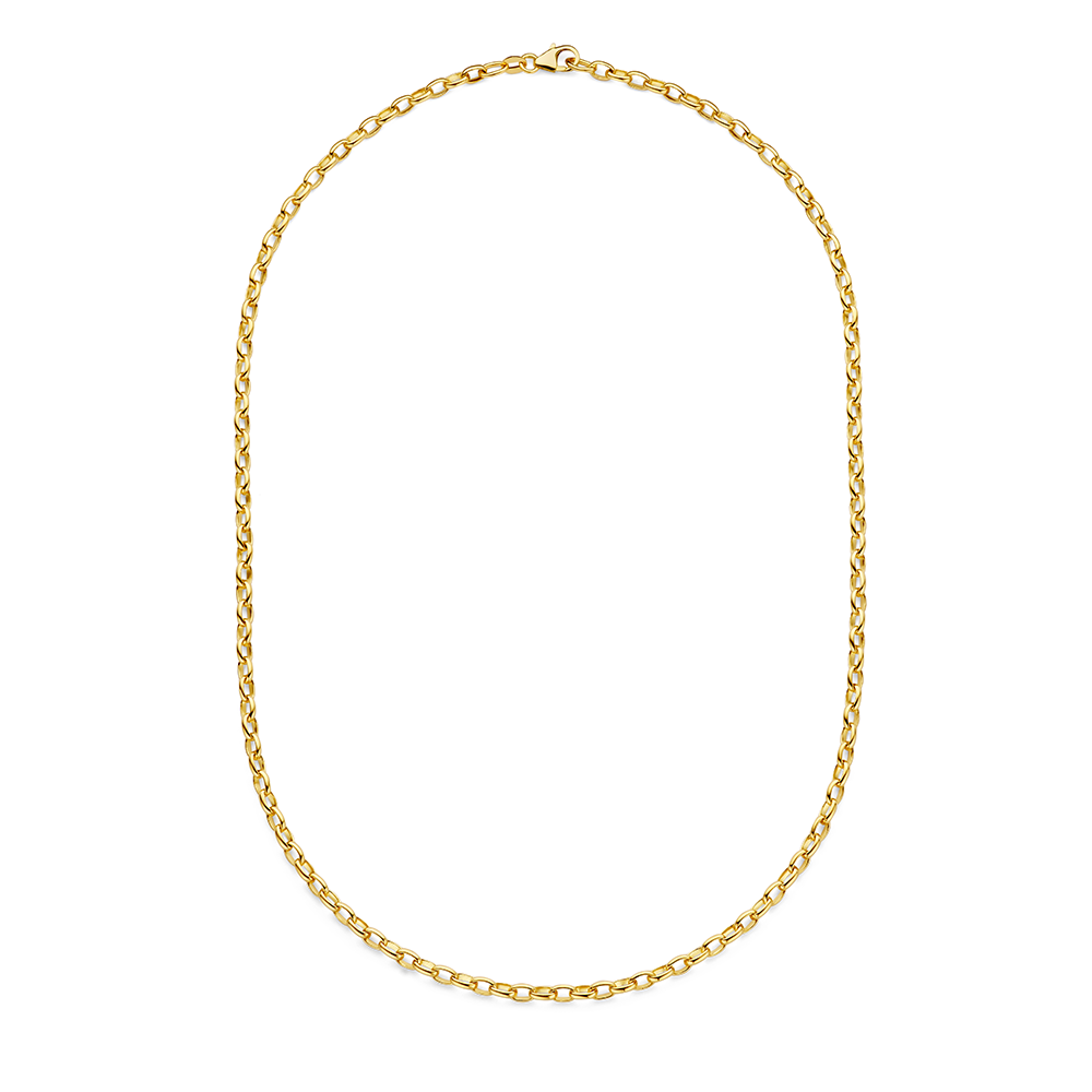 Een massieve schakelketting van Minioro met een schakelbreedte van 3,5 mm, vervaardigd uit 14-karaats goud!